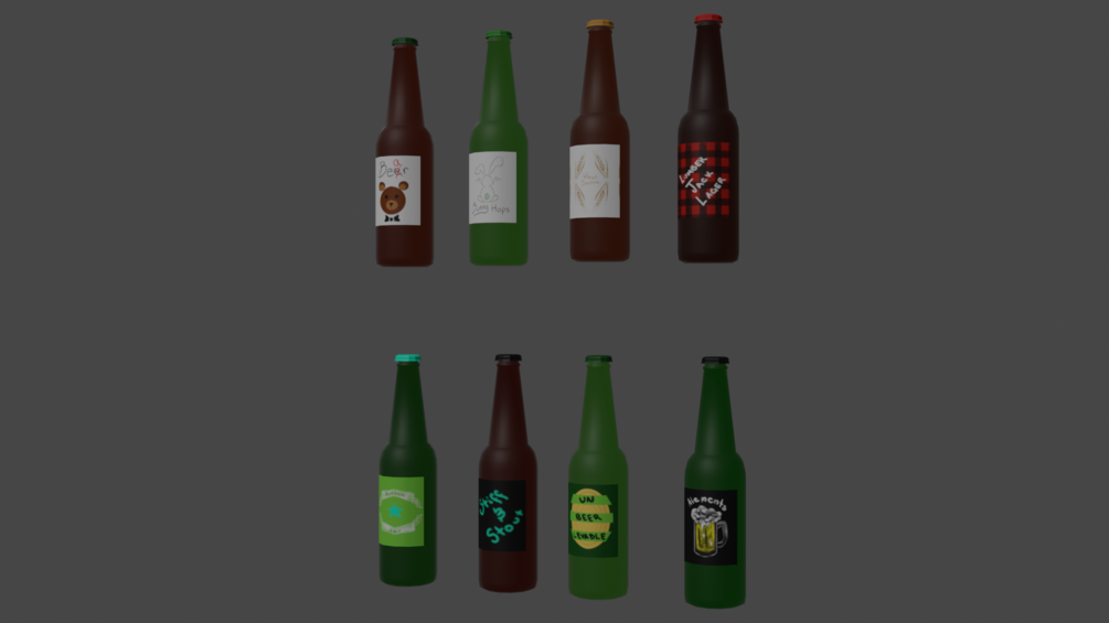 Crack open a cold one for any of your animating, scene, or video game needs. With 8 hand painted textures and never before seen eclectic beer labels your project is bound to look amazing. Each Beer is just 480 polys making it the perfect low poly addition to complex builds.